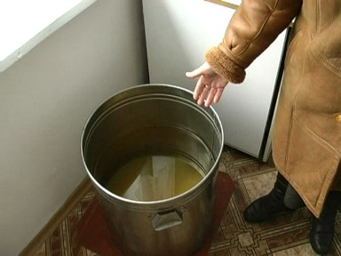Кто помоложе - едет на авто за водой к соседнему селу. А старшие в роли просителей. Радуются литру - другому привезенной воды, которую выделит сосед. В каждом доме емкости с водой: и питьевой, и для хозяйственных целей. Но запастись водой можно лишь на несколько дней. Когда же вода в кранах появляется, то пить ее все равно нельзя. Она имеет рыжий цвет.