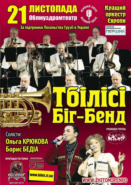 21 ноября на сцене Житомирского облмуздрамтеатра им. И. Кочерги выступят звезды мировой величины с лучшим оркестром Европы – «Тбилиси Биг-Бенд».