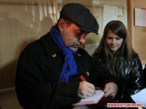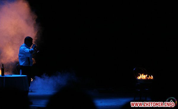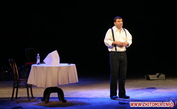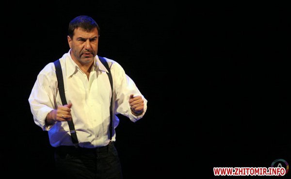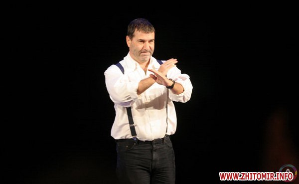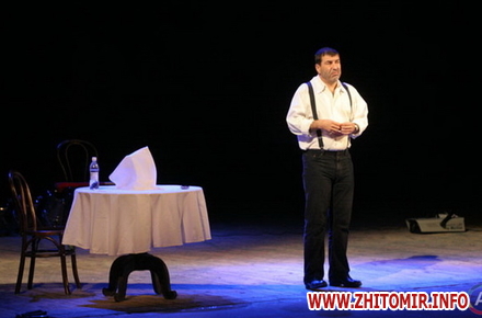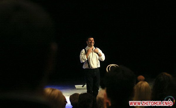 Перед началом выступления Гришковец сказал, что он в Житомире уже второй раз. «Конечно, Житомир большой город и не так просто вовремя добраться», - шутил актер в адрес опоздавших зрителей.