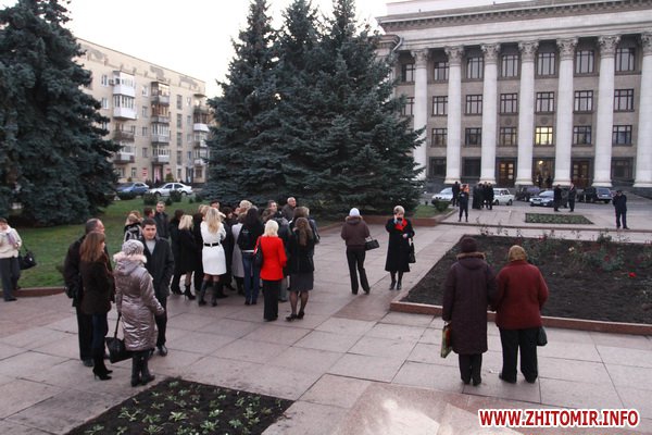 3 ноября около 16.00 из здания на площади Соборной,1 в центре Житомира эвакуировали всех сотрудников и посетителей (около 200 человек). По предварительным данным причиной стало сообщение о заминировании здания.