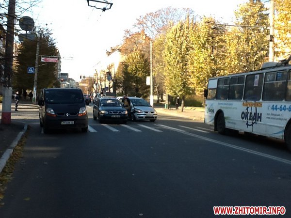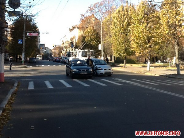 7 ноября в Житомире, недалеко от центрального корпуса университета им.И.Франко столкнулись две легковушки.