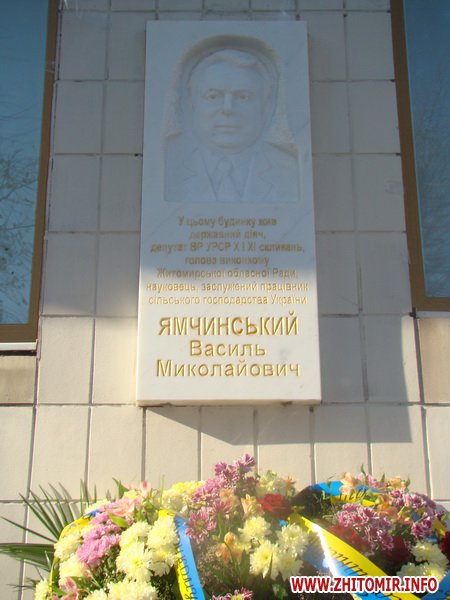 7 листопада в Житомирі на вул. Чорновола відбулося урочисте відкриття меморіальної дошки колишньому голові виконкому Житомирської обласної ради Василю Миколайовичу Ямчинському.