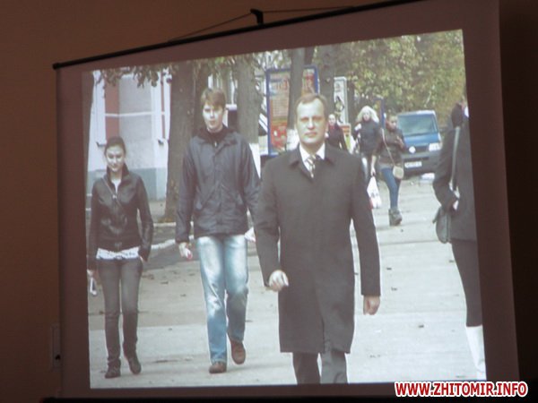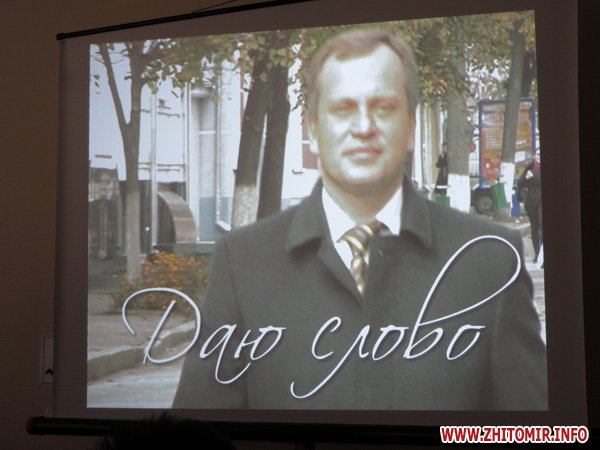 Пресс-конференция вместо анонсированного часа (с 11.00 до 12.00) длилась почти 2 часа. Сначала журналистам показали 10-минутный фильм о достижениях мэра «Даю слово», который житомиряне могли видеть во время прямого эфира мэра 9 ноября на канале «Житомир». Потом около часа Дебой комментировал слайды о положительных изменениях в городе за время его работы и рассказывал о планах на будущее.