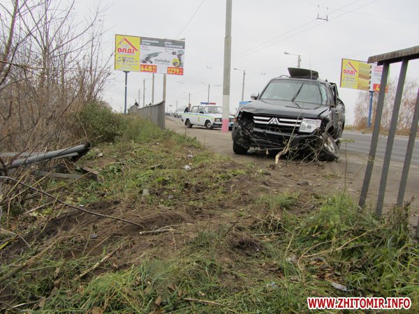 15 ноября в Житомире на Киевском мосту Mitsubishi снесла металлическое ограждение и съехала в кювет.