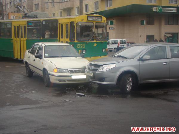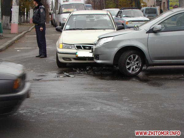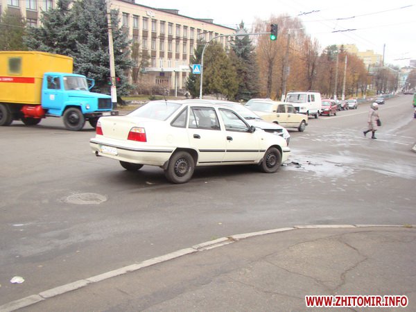 16 ноября в Житомире на перекрестке улиц Больша Бердичевская и Шевченка столкнулись два легковых автомобиля Daewoo Nexia и Geely.