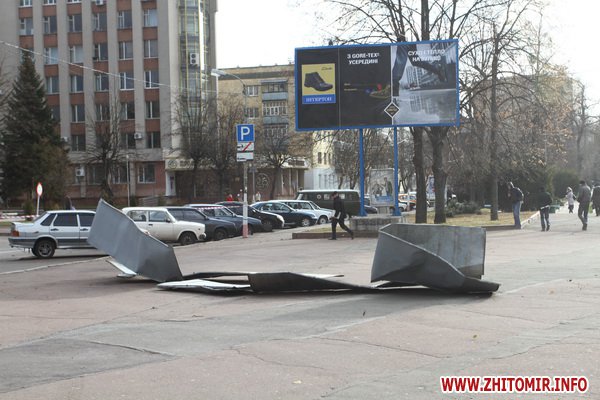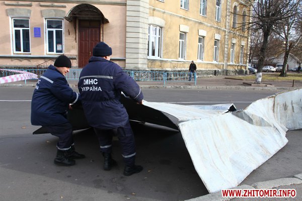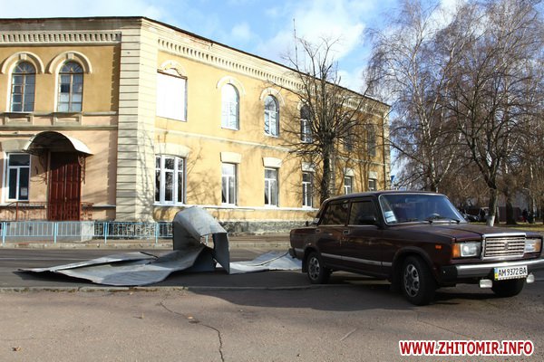 28 ноября около 12.00 сильные порывы ветра сорвали крышу на здании городского Центра творчества детей и молодежи в центре Житомира.