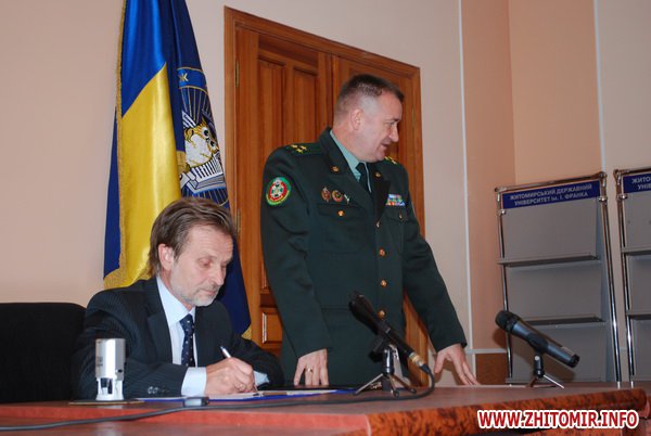 2 грудня 2011 року в конференц-залі Житомирського державного університету імені Івана Франка відбулося підписання угоди про співробітництво Північноукраїнського регіонального управління Державної прикордонної служби України з Житомирським державним університетом імені І.Франка.