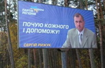 В Житомирской области вдоль трассы «Киев-Житомир» установлены билборды с изображением главы Житомирской обладминистрации Сергея Рыжука и надписью «Почую кожного і допоможу».