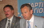 28 июля 2007 года в Житомире состоялась XIII партийная конференция Житомирского областного отделения Партии регионов, на которую прибыли около 1000 активистов из всех 23 районов области, (всего было представлено 28 районных и городских партийных организаций), депутаты всех уровней. На фото: Вячеслав Чорновил и Николай Присяжнюк во время пресс-конференции