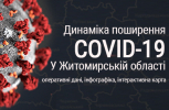 Коронавірусну інфекцію у Житомирській області вже виявили у Бердичівському, Малинському, Коростенському, Радомишльському, Черняхівському, Житомирському районах та у місті Житомирі. За минулу добу (7 квітня 2020 року) в області підтвердили ще 13 нових випадків захворювання на коронавірус.