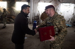 Президент відвідав передові позиції українських військ на Куп'янському напрямку та нагородив захисників.З-поміж них Глава держави присвоїв звання Героя України та вручив орден «Золота Зірка» полковнику Олегу Апостолу, який командує 95-ю окремою десантно-штурмовою Поліською бригадою ДШВ ЗС України.