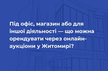 Шукаєте приміщення під оренду в Житомирі чи області? Кілька варіантів комунальної нерухомості вже доступні в державній електронній торговій системі «Прозорро.Продажі». Система забезпечує прозорі торги, тому ви зможете винайняти приміщення за ринковою ціною. Держава та органи місцевого самоврядування можуть передавати своє майно в оренду виключно через «Прозорро.Продажі», тож перелік об'єктів справ...