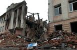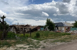 Заїжджаємо на одну із вулиць в Коростені і одразу кидаються в очі забиті дошками вікна в будинках, трохи далі видніються пошкоджені дахи, оббиті плівкою, і свіжозбудований паркан, а за ним - напівзруйнована хата і половина автомобіля, припаркованого в дворі. Сусідні будинки перетворились на руїни, як і вся вулиця.