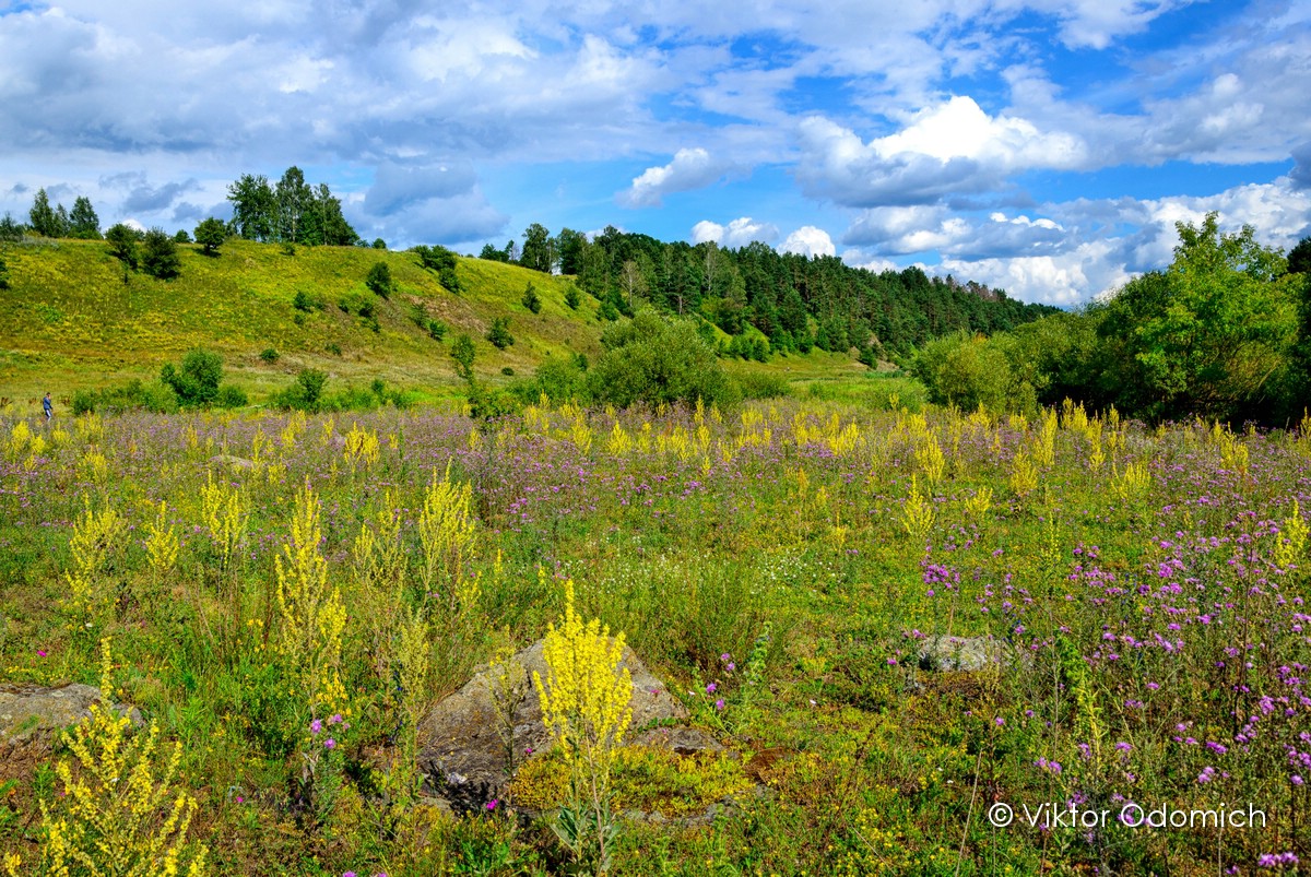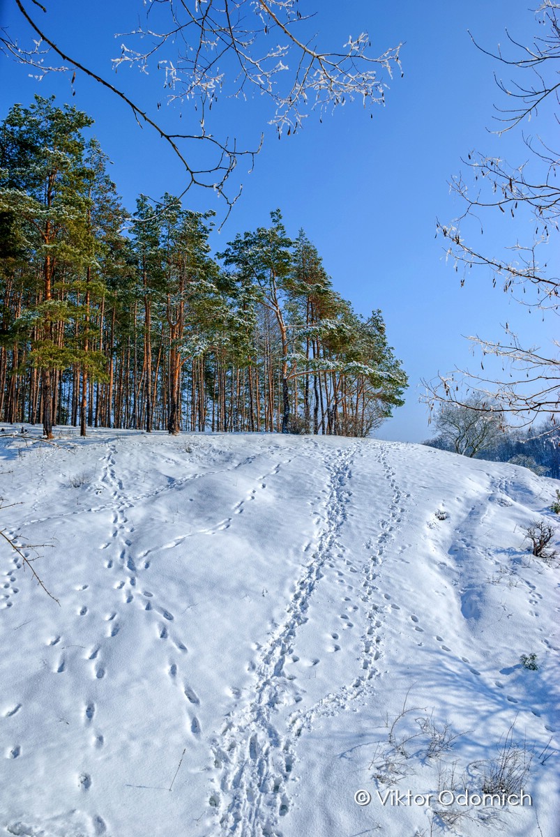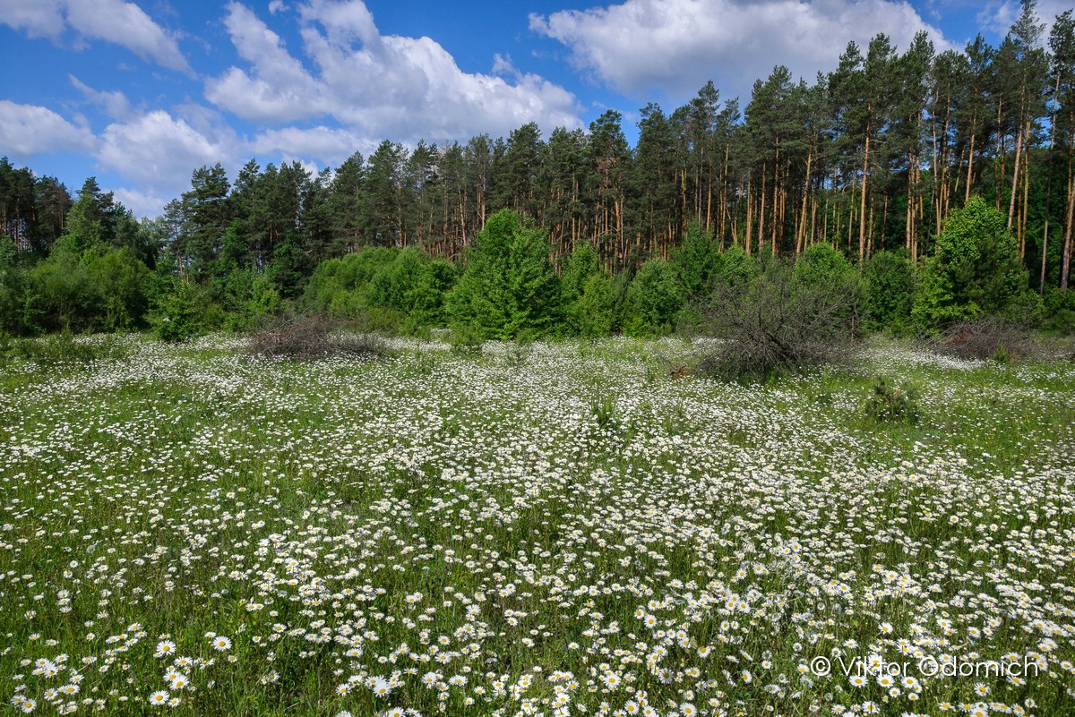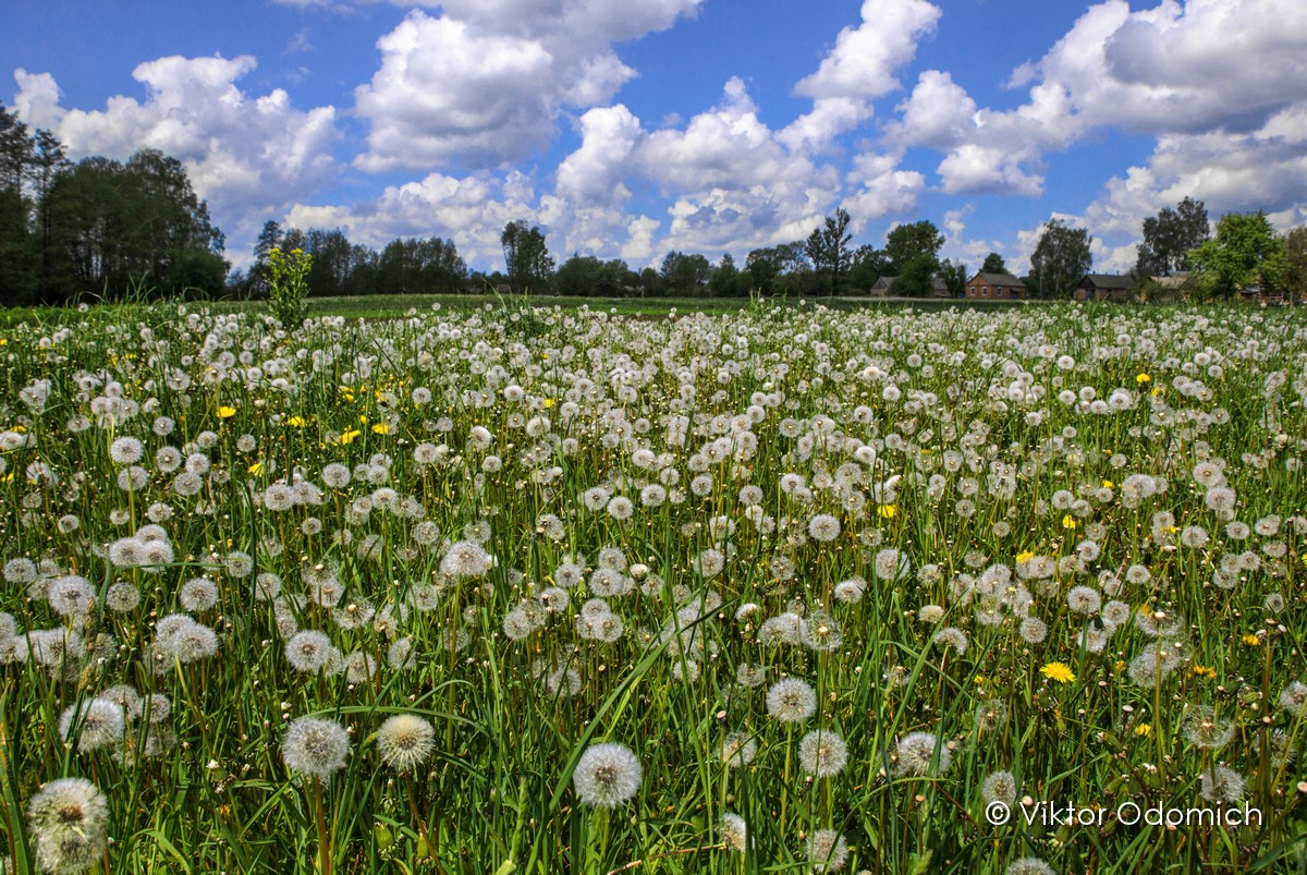 А ще фотокартини Віктора Одоміча – правда, іноді хочеться посперечатися з автором щодо назв – спонукають до екзистенціальних роздумів. «Кульбабкове царство» – море білих хмаринок у небі, які схожі на білі голівки кульбабок, море білих голівок кульбабок, які так схожі на білі хмаринки. І все це разом на одній світлині! Ще мить, повіє вітер – зникнуть хмаринки, кульбабки… О, швидкоплинність буття… Тривіально? Відомо? Чому ж не цінуємо кожну секунду? «І сосни, і граніт» – вони, дві сосни, народилися на одному «ідеологічному» гранітному ґрунті, й у розвитку своєму певний час йшли бік обік, але в бажанні досягнути висоти розійшлися у поглядах, і протистояння їхнє росте із року в рік, а поодаль глядачі «зверхньо» спостерігають за змаганням амбіцій. «Світло і тіні» – стовбури дерев і їхні тіні створюють безліч систем координат. В якій із них жити, яку обрати? І чи вплине цей вибір на життєву дорогу, яка видніється серед дерев і їхніх тіней?..