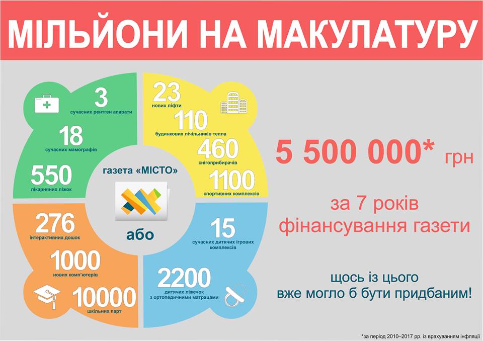 У місті є інші актуальні проблеми, на вирішення яких було б ефективніше спрямувати кошти, які йдуть на макулатуру (тобто на випуск газети «Місто»).