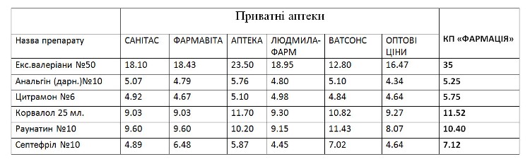 У комунальній аптеці Житомира - найвищі ціни. Хоча мало би бути навпаки. Адже не так давно мер Сухомлин говорив про соціальну роль цих закладів. На практиці бачимо, що в приватних аптеках ціни значно нижчі.