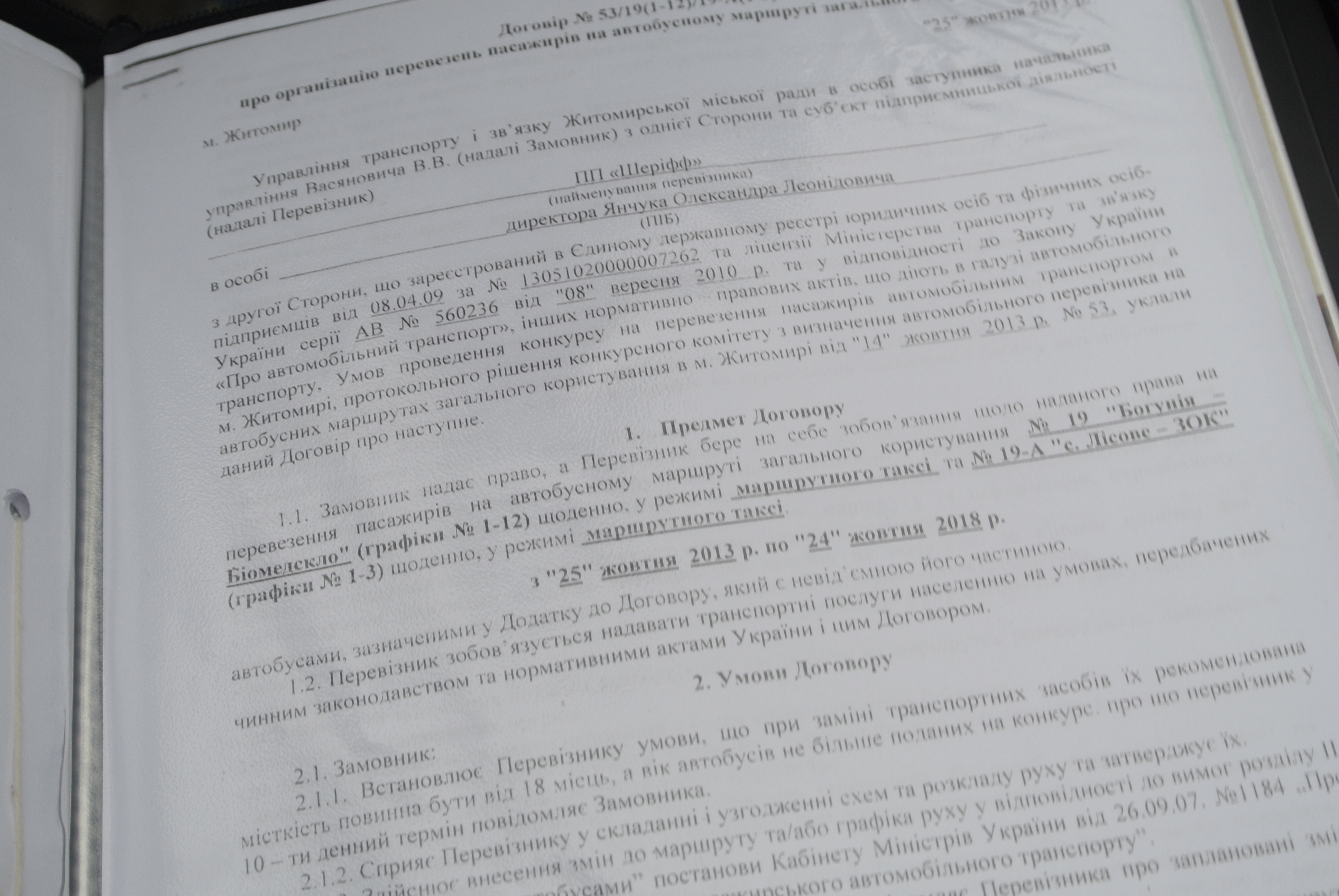 Сьогодні робоча група виконавчого комітету міської ради з питань економіки, транспорту, зв’язку,підприємництва та торгівлі влаштувала перевірку виконання умов договорів про перевезення пасажирів на деяких маршрутах міста. При перевірці був присутній заступник начальника управління транспорту та зв’язку Васянович В.В. Перевіривши документи у водіїв, ми впевнилися у тому, що частина автобусів маршруту №19 їздить вулицею Максютова без договору на право здійснювати перевезення пасажирів, а інша частина вулицею Миру, але в обох випадках початкова зупинка с. Лісове. За умовами проведеного конкурсу з визначення автомобільного перевізника на маршрут № 19 початкова зупинка є «Богунія», а не с. Лісове.