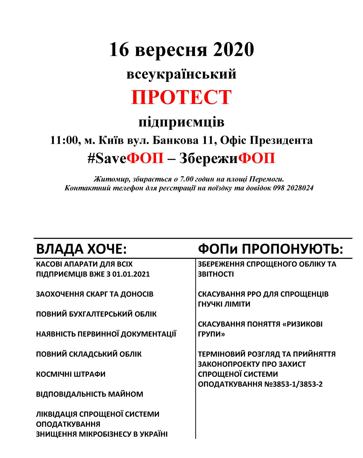Із 1 січня 2021 року всі підприємці мають встановити касові апарати, найняти бухгалтерів та практично перейти на загальне ведення бухгалтерії, що зробить нерентабельним заняття підприємницькою діяльністю. Якщо коротко, то такими діями хочуть не просто знищити малий і середній бізнес на угоду великим корпораціям, але й розправитися з людьми, які мають власну думку і не готові миритися з економічними злиднями, до яких нас веде цей Уряд та Верховна Рада.