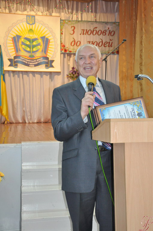 Добрим словом, грамотами і тортом був поздоровлений Пальчинський В’ячеслав Аполінарович, який 45 років життя присвятив роботі в училищі, цікаво і доступно передаючи свій багатий життєвий досвід і глибокі професійні знання учням з таких важливих предметів як «Радіоелектроніка», «Електроматеріалознавство», «Креслення» та ін. Адже честь училища вимірюється знаннями і моральними якостями його учнів. Пальчинський В.А., на мою думку, є взірцем як професійної майстерності так і морально-етичних якостей, які він культивує в учнях.