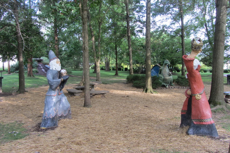 А еще у него погиб сын, и он сделал в память о нем парк-мемориал по мотивам его любимой компьютерной игры. Мы туда потом заехали – небольшой скверик с кучей разных фигурок и деревянным лабиринтом, на входе табличка, что тут все бесплатно, на территории парка ни за что платить не надо и тут никто ничего не продает. На содержание этого места хозяин винодельни тратит 130 тыс. дол. в год.