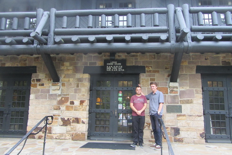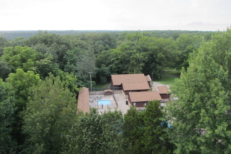 Потом нас повезли в «традиционный американский ресторан», вернее – ресторан с традиционной едой. Но мы приехали чуть раньше, поэтому еще залезли на смотровую башню, она же – водонапорная, там 84 или 86 ступенек по винтовой лестнице, а под ней – дом с бассейном, где снимали эпизод из фильма «Исчезнувшая» (англ. Gone Girl). Аренду на эти домики нужно заказывать на полгода вперед и стоят они не дешево, а в фильме это был типа бедный мотель.