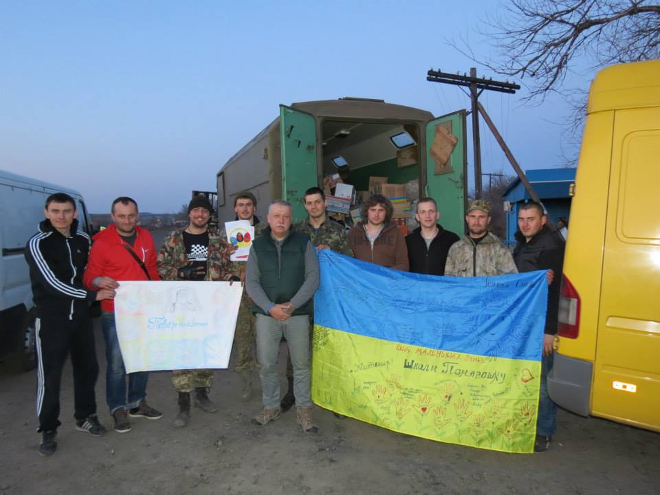 15-ю поездку в зону проведения АТО мы решили приурочить к празднованию Святой Пасхи. Очень хотелось, чтобы наши защитники почувствовали тепло родного дома, заботу и любовь своих близких, внимание и уважение своих земляков. Наверное, поэтому и перечень нашего гуманитарного груза был, как никогда разнообразным и большим. Там было все – летняя форма, облегченные берцы, кроссовки и другая необходимая обувь, белье, средства личной гигиены, носки, форменные флисовые кофты, различная амуниция, кариматы, кевларовые защитные шлемы, маскировочные сети и кикиморы для снайперов, мобильные телефоны и компьютерные изделия для разведчиков, колесо для БТРа, медикаменты, медицинское ортопедическое оборудование, постельное белье, множество различных продуктов питания, сладостей, детской одежды, игрушек и игр для детей, ну и конечно – пасхи, пасхи, пасхи… и крашенки. Короче, загружены мы были под самую завязку – как всегда три автобуса и прицеп. Сразу хочу отметить тех, кто помог нам собрать и купить все мной перечисленное, а также обеспечил топливом для его доставки.