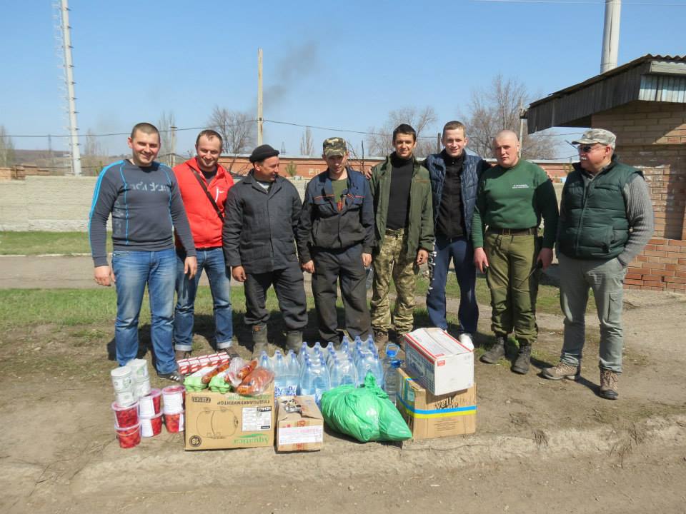 Около 4-х утра 12.04.15 приехали в Славянск, где выгрузили подарки бойцам нашей Житомирской 95-й бригады. Сфотографировались, пообнимались, поцеловались и …….. Попали в руки к нашим Житомирским СБУшникам. Конечно, это шутка. Ребята нас ждали, т.к. мы их предупредили, что везем им гостинцы. Разгрузились мы у них на базе, а где рассказывать не буду. Одним словом, за Краматорском. Они нас заправили топливом!!! и мы около 6-ти утра поехали на Харьков.