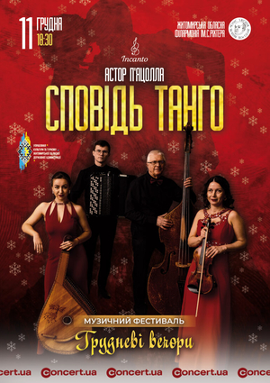 Квартет «Incanto» подарує слухачам вечір, сповнений вогню аргентинського танго, глибини почуттів і магії музики. Твори геніального Астора П’яццолли прозвучать по-новому — емоційно, пристрасно, з душею.