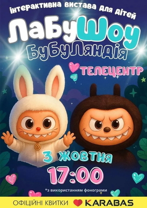 Ти теж їх обожнюєш? Тоді запрошуємо тебе на інтерактивне шоу “ЛаБуШоу. БубуЛандія”! Знайомся з велетенськими пухнастими героями, смішними вухастиками та несподіваним героєм-рятівником, що врятує світ БубуЛандії!