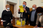 На першій сесії Житомирської міської ради восьмого скликання депутати склали присягу та голосували за секретаря, заступників міського голови та членів виконкому. На засідання прийшли 39 із 42 депутатів. Зазначимо, що участь у голосуванні бере також міський голова.