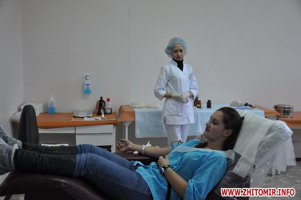 Свою кров вперше здавали представники семи навчальних закладів Житомира: Житомирський інститут медсестринства, Житомирський державний технологічний університет, Житомирський державний університет імені Івана Франка, Європейський університет, університет «Україна», Житомирський військовий інститут імені С. П. Корольова Національного авіаційного університету, Житомирське музичне училище ім. В. Косенка.
