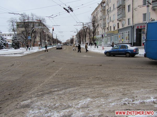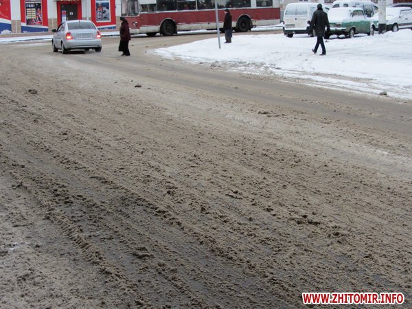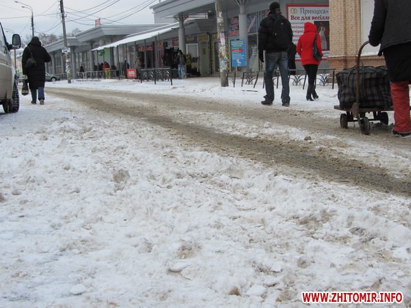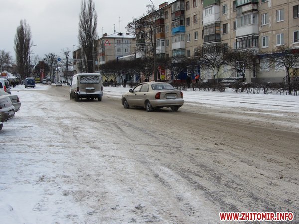 Накануне старого Нового года, в пятницу 13 января в Житомире пошел снег и шел, почти не переставая, все выходные. Но власти города и дорожные службы не спешат чистить улицы от снега. То ли жалеют новую технику, которую демонстрировал на ул.Михайловской мэр Владимир Дебой. То ли для наших властей как в песне «одна снежинка – еще не снег» и они ждут, когда на дорогах появятся настоящие сугробы.