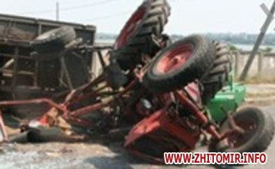 В результате ДТП пассажир трактора, 55-летний житель с. Токарев Новоград-Волынского района, от полученных телесных повреждений погиб на месте происшествия.