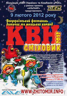 Вперше в Житомирі відбудеться фестиваль «Сміховик-2012». У ньому візьмуть участь 10 кращих дитячо-юнацьких команд КВН України, - повідомляє Афіша Житомира