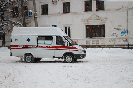 В Житомире в сугробах грузнут машины «скорой помощи».
