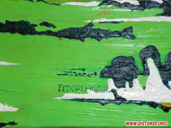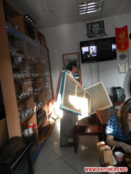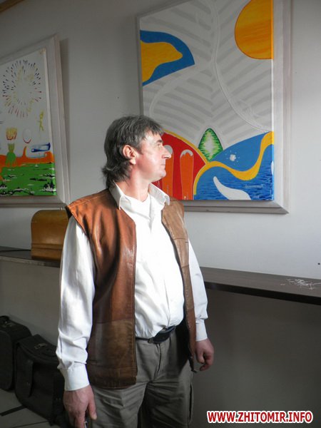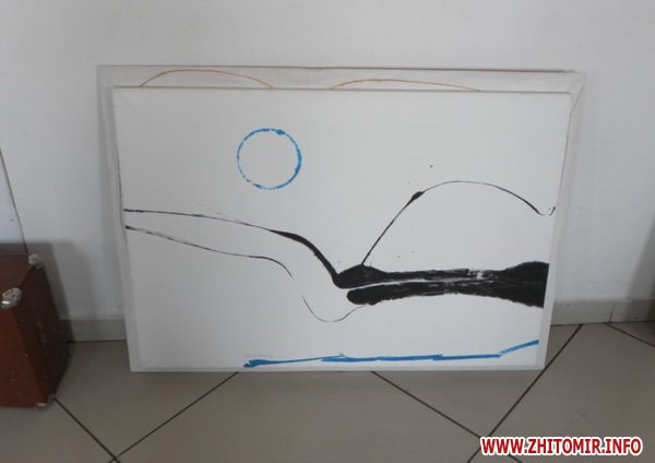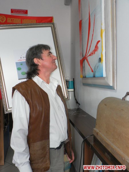 Художник забороняє фотографувати свої роботи. Говорить, що сам може їх показати. Журналісту Житомир.info вдалось потрапити, так би мовити, за куліси виставки і побачити роботи художника.