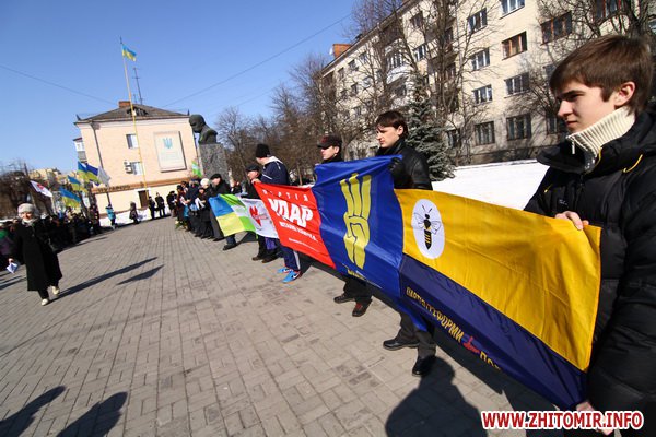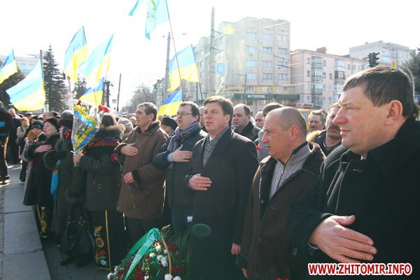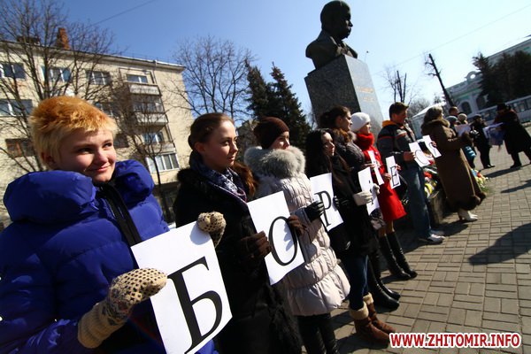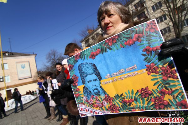 9 березня 2012 року, у Житомирі біля пам\'ятника Тарасу Шевченку з нагоди вшанування пам\'яті великого Кобзаря відбулося урочисте зібрання опозиційних сил Житомирщини - партій «Фронт Змін», Батьківщина, Удар, ВО Свобода, Партія реформи і порядок.