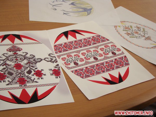 «Ми довго обговорювали, якою саме має бути ця писанка, адже її розпис повинен стати своєрідною візитівкою Житомирщини на фестивалі писанок у Києві. Ми віддали перевагу традиційній червоно-чорній гаммі кольорів. На писанці буде зображений символ дерева та інші притаманні нашому краю візерунки. Але цей макет не є остаточним, ми продовжуємо приймати й обговорювати пропозиції щодо майбутнього розпису, технологій, матеріалів та фарб, які будуть використанні в роботі», - повідомила Лариса Харчук.
