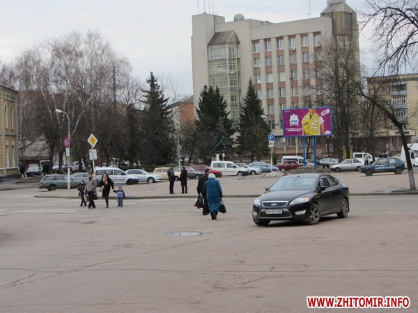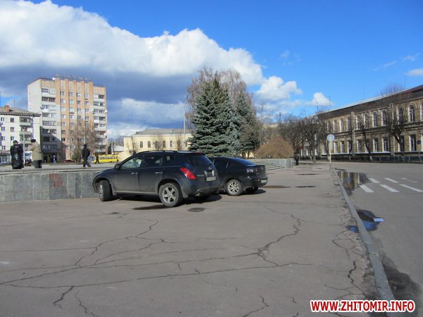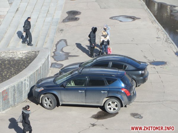 Журналист Житомир.info сфотографировал Ford на тротуаре вечером 28 марта, а днем 29 марта возле областной администрации стояли аккуратно припаркованные Nissan и Mazda.
