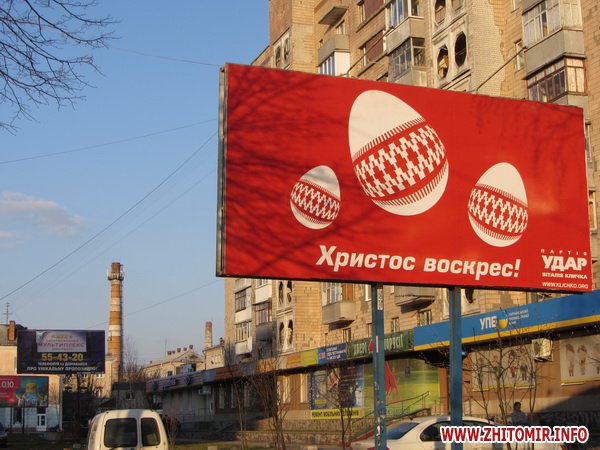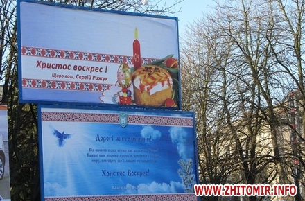 В Житомире накануне Пасхи появились билборды с поздравлениями от политических сил и руководителей города и области.