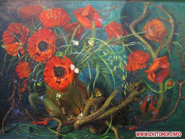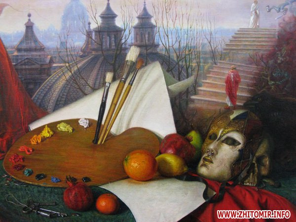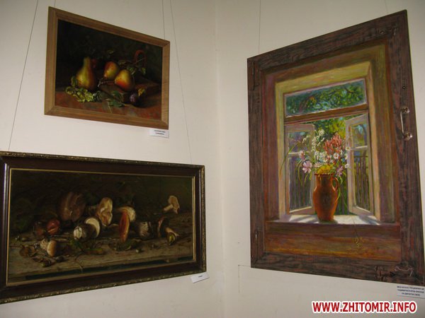 На выставки представлены очень интересные работы житомирского художника. «Я бывал во многих странах мира и собирал разные интересные впечатления, потом запечатлел их на своих картинах. Также мне очень нравится украинское село, я по капле собирал образы нашей страны и потом изображал», - рассказал Юрий Камышный.