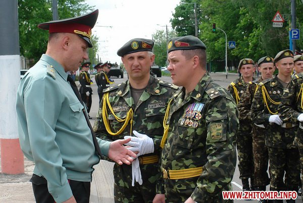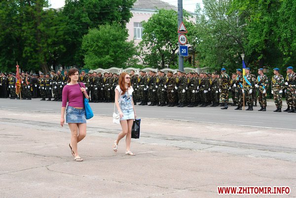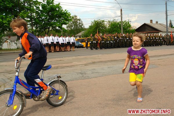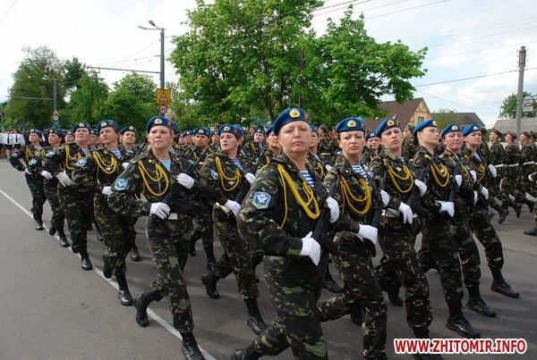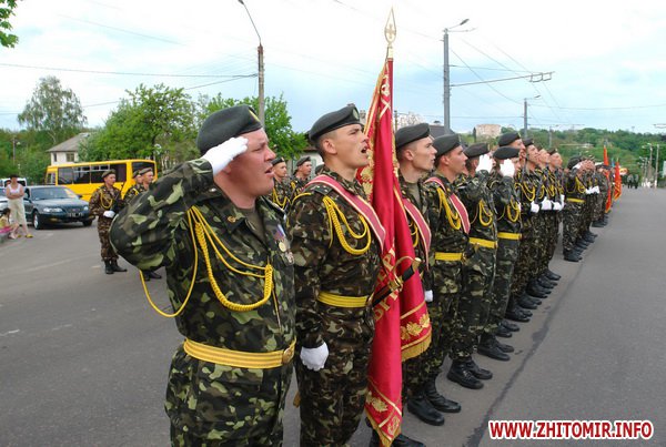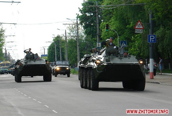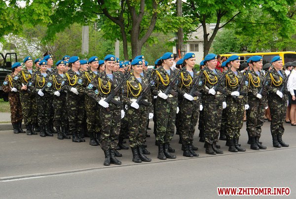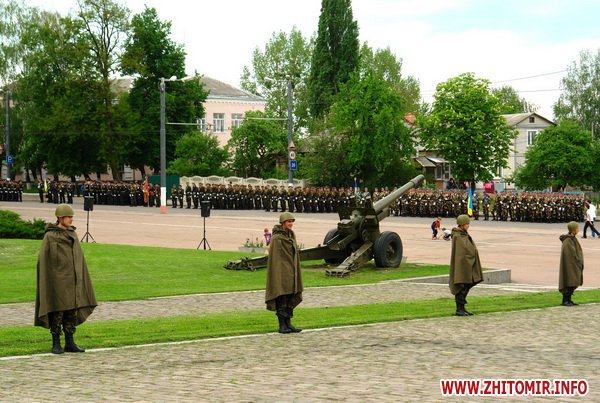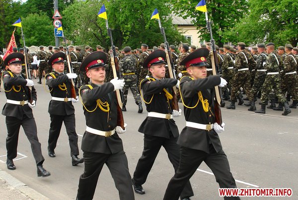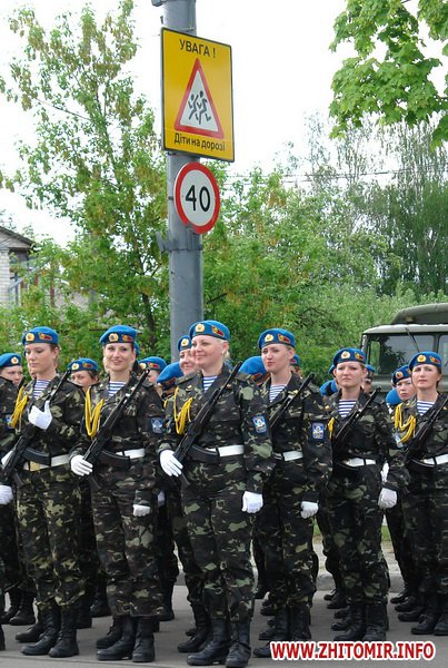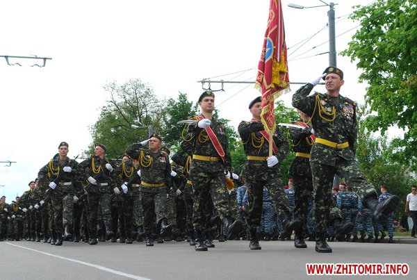 Почти 2 часа прохожие могли наблюдать, как военнослужащие воинских частей 8 армейского корпуса тренировали торжественное прохождение. Вместе с военными оттачивали шаг пограничники, милиция и курсанты Житомирского военного института им. С.П.Королева. Данное мероприятие проводилось в рамках подготовки к празднованию 67-й годовщины Победы в Великой Отечественной войне