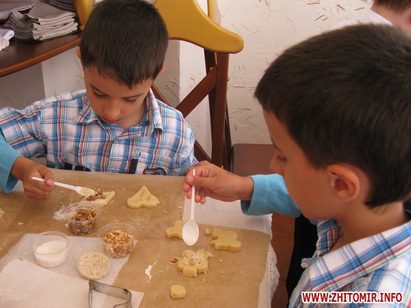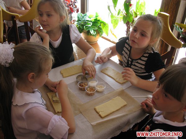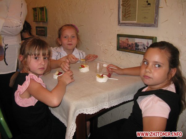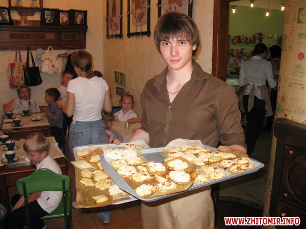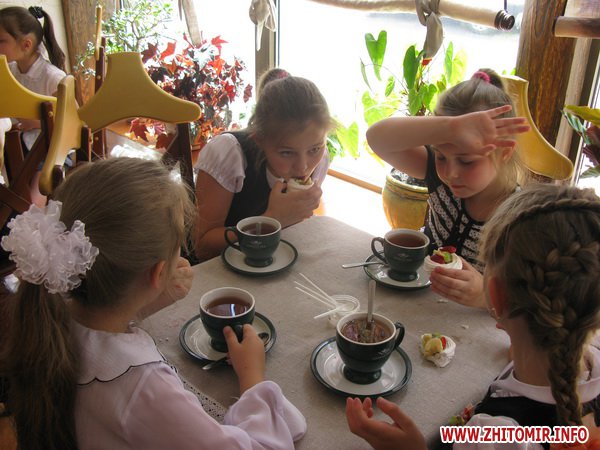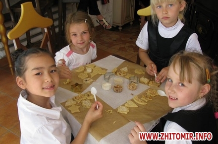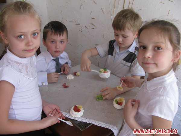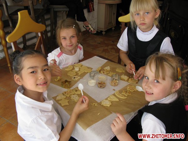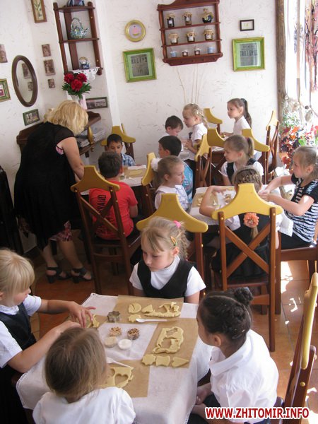 Ученики 1-Б класса 23 гимназии провели урок в одном из кафе Житомира. Учительница рисования этой гимназии Галина Касянчук организовала для детей мастер-класс, на котором дети сами делали печенье и украшали безе.