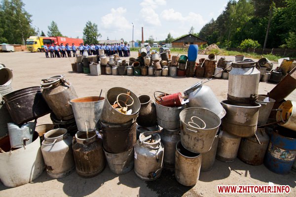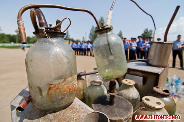 30 мая в Житомире милиция уничтожила около 500 конфискованных самогонных аппаратов и 100 литров самогона.