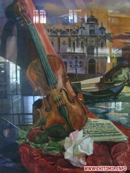 На выставке представлены картины ученицы Виктора Шкуринского из Хмельницкой области - Ирины Ткач. Название экспозиции - «Акварели», так как все картины выполнены именно с помощью этого материала. Представлены работы художницы на самые разные темы: и природа, и города, и просто цветы.