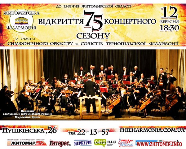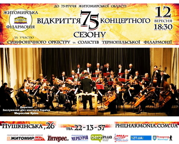 12 вересня Житомирська обласна філармонія відкриває 75-й сезон.