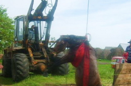 Коня удалось вытянуть. Он повредил ноги и мог самостоятельно передвигаться. Его владельца найти не удалось, поэтому на временное содержание животного забрал один из свидетелей происшествия.