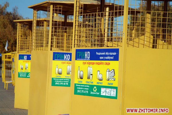 Ко Дню города предприятие «Гринко-Житомир» на центральных площадях Житомира расставило желтые контейнеры европейского типа, предназначенные для раздельного сбора отходов. В эти контейнеры будут собираться отходы во время празднования Дня города. Но главное их назначение – послужить наглядной демонстрацией европейских технологий раздельного сбора мусора, способствовать формированию культуры обращения с отходами у населения. Для пропаганды раздельного сбора промоутеры возле контейнеров раздают агитационные материалы. После праздника «колокола» останутся стоять в центральной части города.