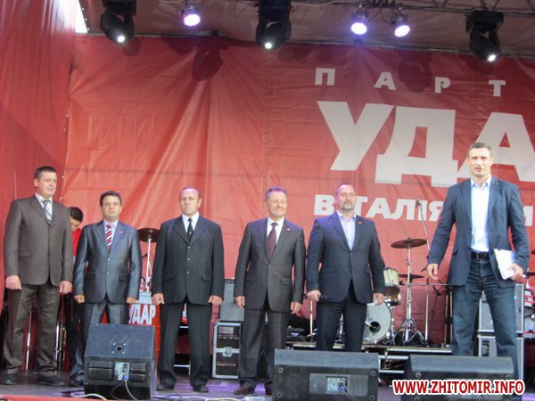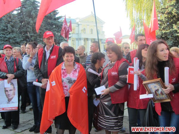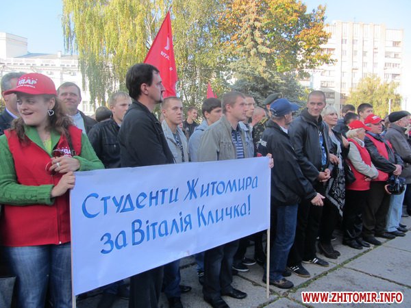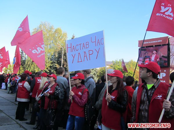 30 сентября в Житомир приехал лидер партии «Украинский Демократический Альянс за Реформы» Виталий Кличко. Сотни горожан вышли на площадь Королева, чтоб встретиться с известным спортсменом и политическим деятелем.