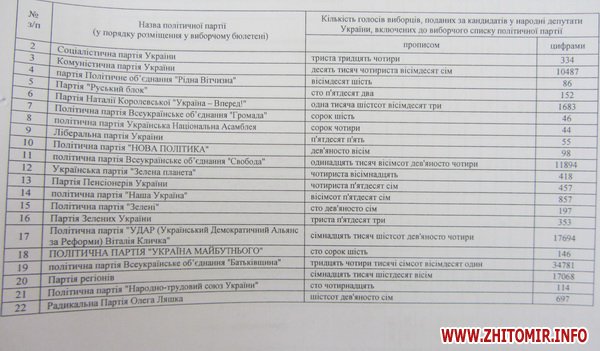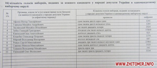 31 октября окружная избирательная комиссия по выборам народных депутатов Украины одномандатного избирательного округа №62 (Житомир) сдала протокол с результатами выборов в Центризбирком.
